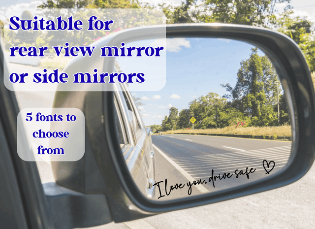 This “I Love You, Drive Safe” or "Drive safe, I love you" car mirror decal is made from high-quality permanent waterproof vinyl, designed to last through rain, sun, and everyday wear.