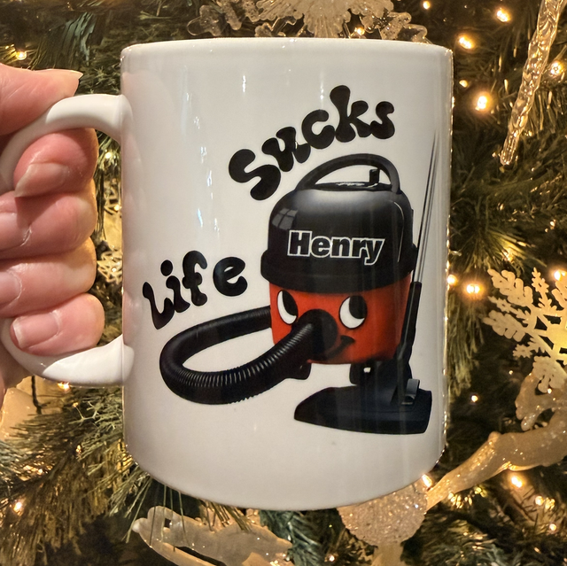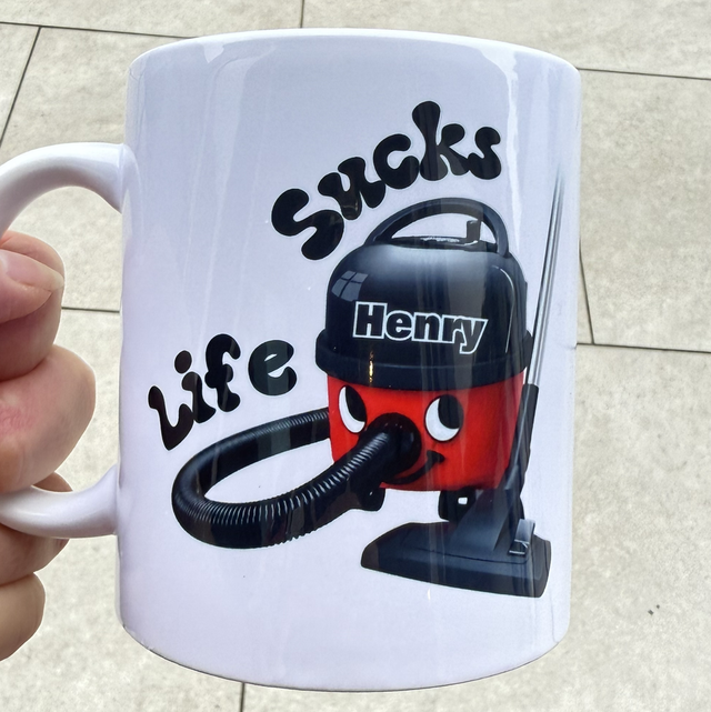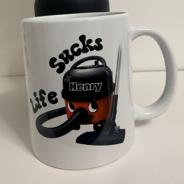 Start the day with a laugh! This hilarious “Life Sucks” mug, featuring a cheeky Henry vacuum cleaner, has been designed to brighten even the gloomiest mornings. Whether given as a passive-aggressive office gift or simply used as your daily dose of sarcasm, this mug will surely become a conversation starter.